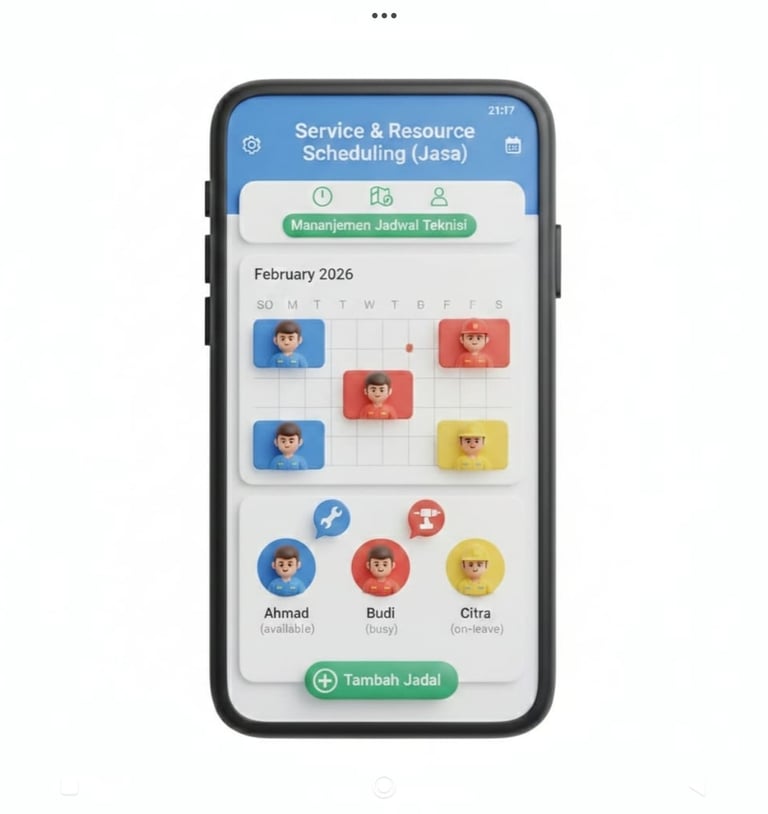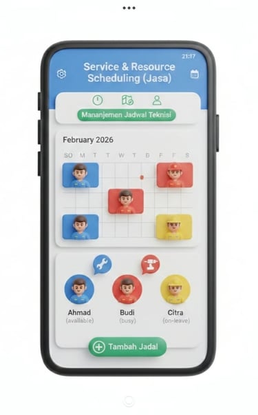 Service & Resource Scheduling (Jasa): Manajemen jadwal teknisi atau penyedia jasa yang tertata rapi.