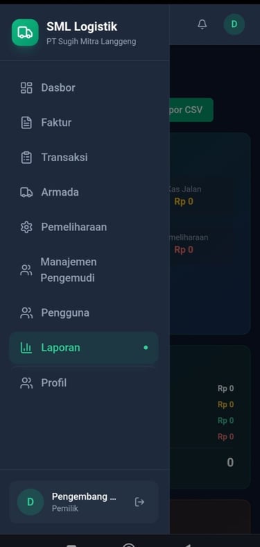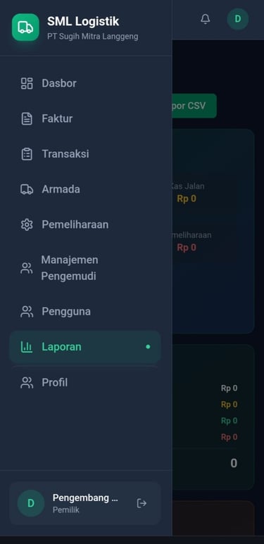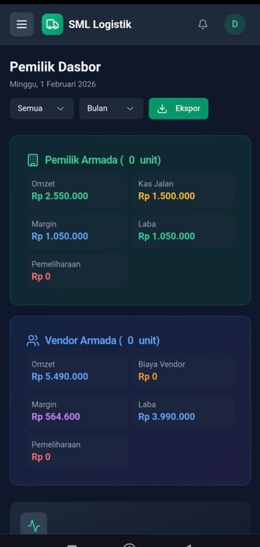 SML Trucking adalah sebuah manajerial yang bersifat autopilot untuk mengontrol armada dan logistik serta laporan dan oprasional usaha secara otomatis